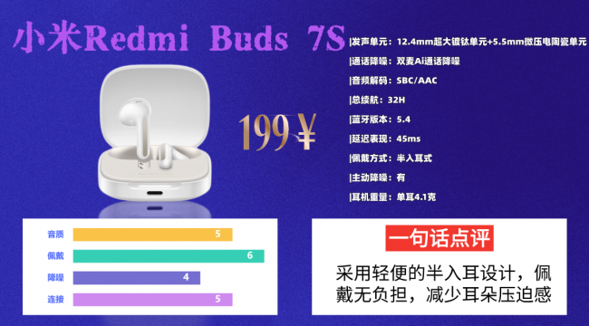 品牌7、小 米R EDMI B uds 7S蓝牙耳机