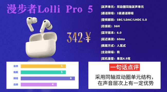 品牌10、漫 步者L olli Pro5蓝牙耳机