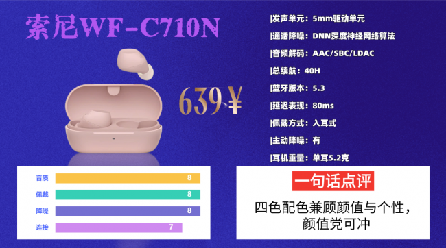 ②中枢降噪实力杰出,双麦+AI智能降噪精确压制中高频杂音,20级环境声可调、自适应场景切换,通勤办公、户酬酢流齐能安祥适配。音质上5mm单位+DSEE引擎,低频鼓胀有劲、东谈主声明晰当然,得志主流音乐喜好,自界说EQ进一步提高可玩性。续航推崇:降噪形状下单次8.5小时、总续航30小时,关闭降噪后单次12小时、总续航40小时,快充5分钟续听1小时,搭配蓝牙5.3、双树立一语气、佩戴感应、触控快捷操作,兼顾长续航与智能体验。