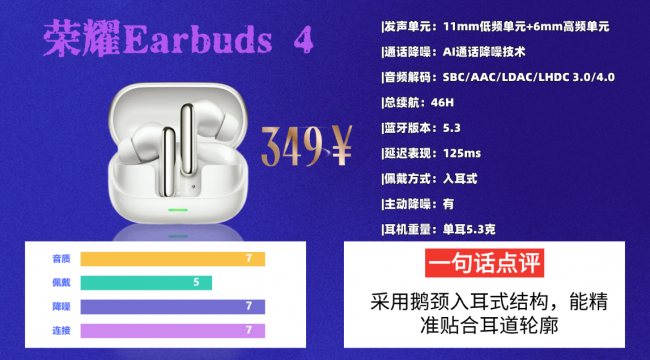 品牌3、荣 耀E arbuds 4蓝牙耳机