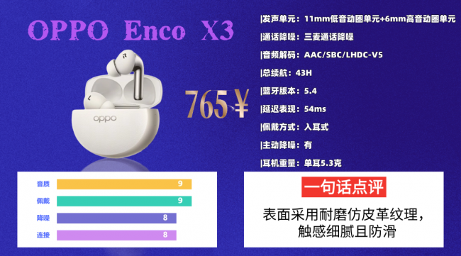 ②音质继承双动圈架构,11mm单位持重低频、6mm单位持重高频,互助独处双DAC解码,声息密度与眉目感推崇可以,低频雄厚有弹性,东谈主声干净通透,高频亮堂不逆耳。支柱LHDC 5.0与空间音频,现场感与包围感更强。蓝牙5.3一语气平稳,游戏低延迟至54ms,单次续航6.5小时,空洞续航可达43小时。