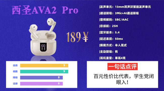 品牌1、性价比标杆西圣AVA2 Pro蓝牙耳机