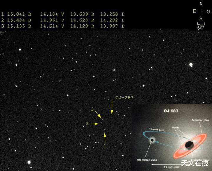 这是OJ287:迄今不雅测到的最顶点的超大质料双星系统,距离地球约35亿光年。