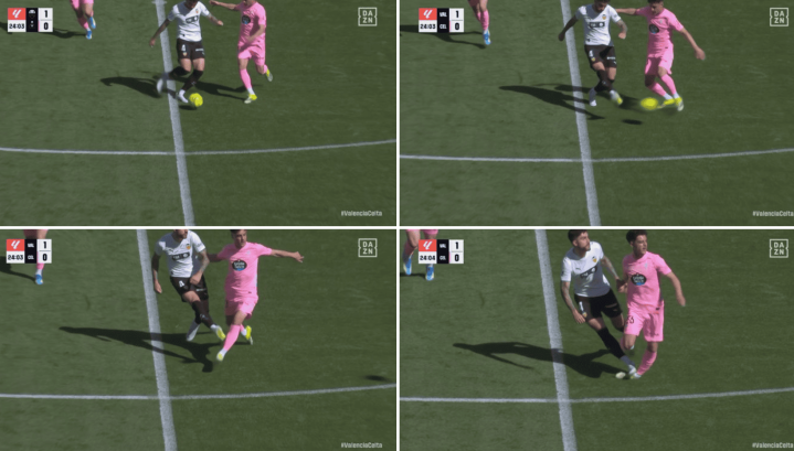 第六例来自瓦伦西亚对阵塞尔塔比赛,乌奈-努涅斯在完成传球后踩到对动作踝,裁判仅判罚犯规,VAR未升级为红牌。