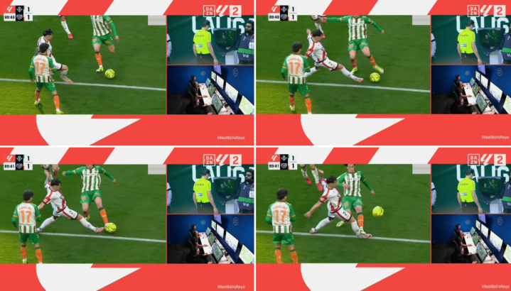 第五例是皇家贝蒂斯对阵巴列卡诺比赛,巴伦廷-戈麦斯突围后踩到敌手,VAR曾提倡红牌,但主裁最终未采取,这是惟逐一次接近红牌判罚的案例。