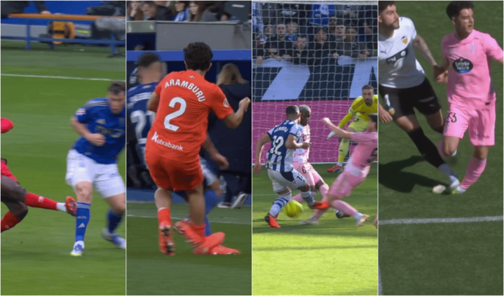 第一例出面前皇家奥维耶多对阵巴列卡诺比赛,留神球员在突围后因惯性踩到敌手膝部,动作致使比马丁更危急,但主裁和VAR均未判罚犯规。