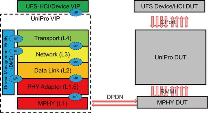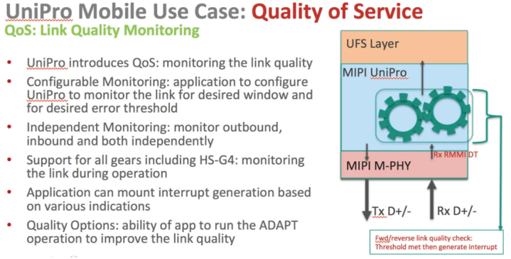 ▲UniPro通过RMMI与M-PHY通讯,不错孤苦监控前向链路和反向链路。