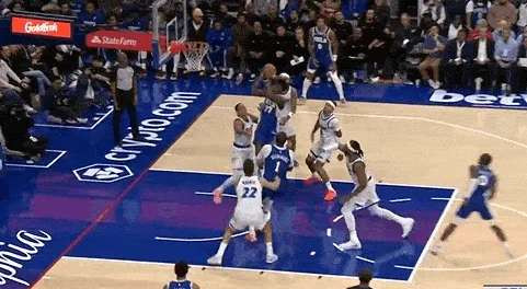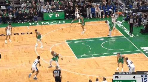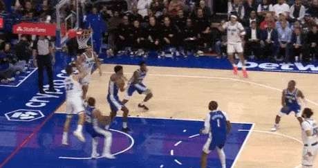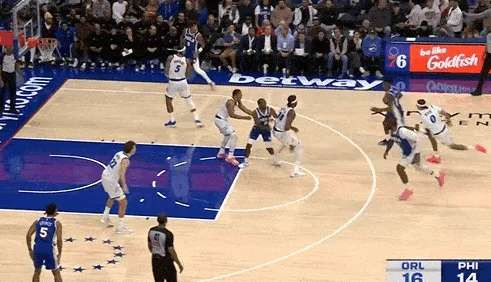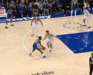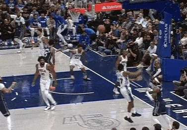 马克西的背掩护质料相等塌实,防止了卡特回退护框,使得贝恩被动换防承担护框就业,VJ一记欧洲步上篮打进。
